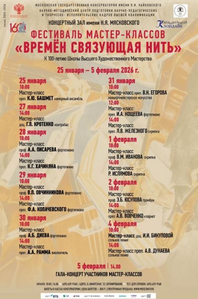 В Московской государственной консерватории имени П.И. Чайковского с 25 января по 5 февраля проходит I Фестиваль мастер-классов выпускников ассистентуры-стажировки «Времен…