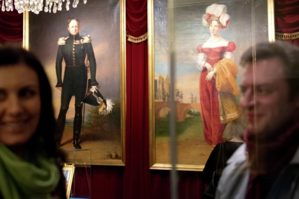 «Портрет императора Александра I» (1820-е гг.) и «Портрет императрицы Елизаветы Алексеевны» (1820-гг.) английского художника Джорджа Доу на выставке «Монархическая галерея». Фото: РИА Новости/ Максим Блинов