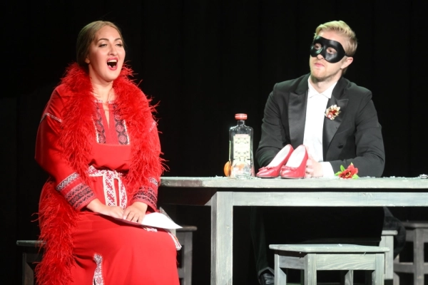Марина Нерабеева (сопрано) в роли Сенты и Игорь Подоплелов (баритон) в роли Голландца в сцене из спектакля «Летучий голландец» в постановке режиссера Константина Богомолова в театре «Новая опера» в Москве. Фото: РИА Новости/ Илья Питалев