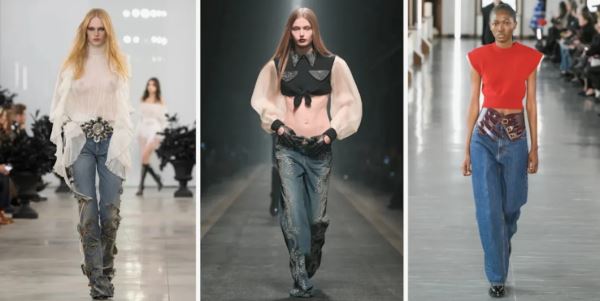 Вдохновляйтесь эстетикой научной фантастики! Выбирайте джинсы с необычной обработкой: например, модели с градиентным окрашиванием (от ледяного синего к фиолетовому) или со вставками из переработанного техно-материала, напоминающего серебряную фольгу. Сочетайте их с асимметричным худи из веганской кожи и кроссовками на утолщенной подошве с подсветкой (да, это тренд!). Верхний слой — длинное пальто-кокон из технического велсофта.