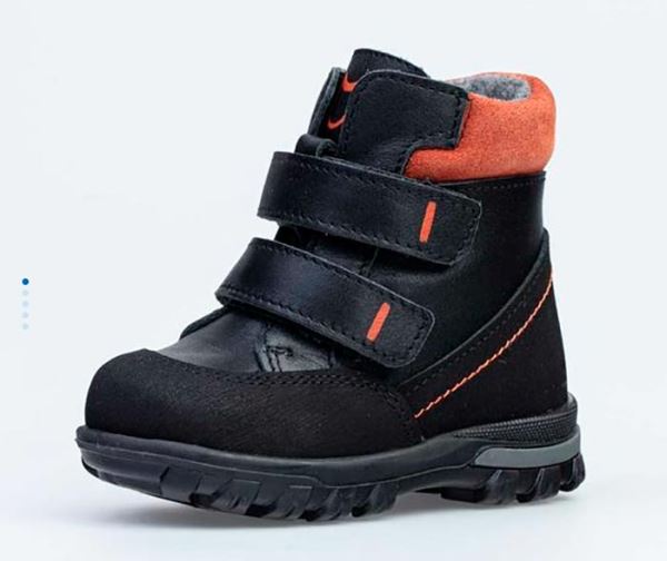 Ботинки «Котофей» из натуральной кожи и меха, на двух липучках.