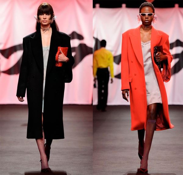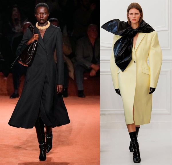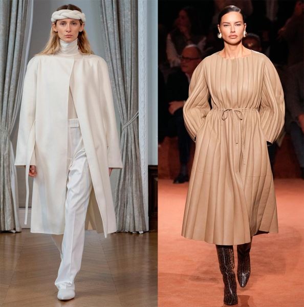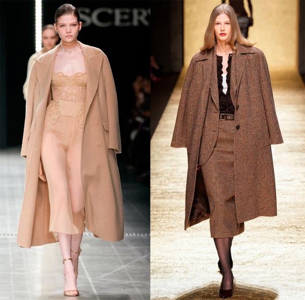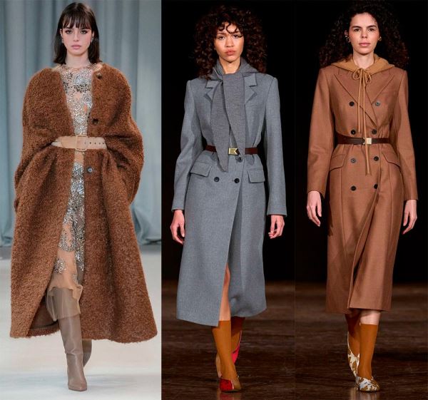Что же касается цветовой палитры, то на подиуме были не только традиционные приглушенные оттенки, но и яркие осенние варианты. Пальто сочных оттенков можно встретить в коллекциях именитых дизайнеров.