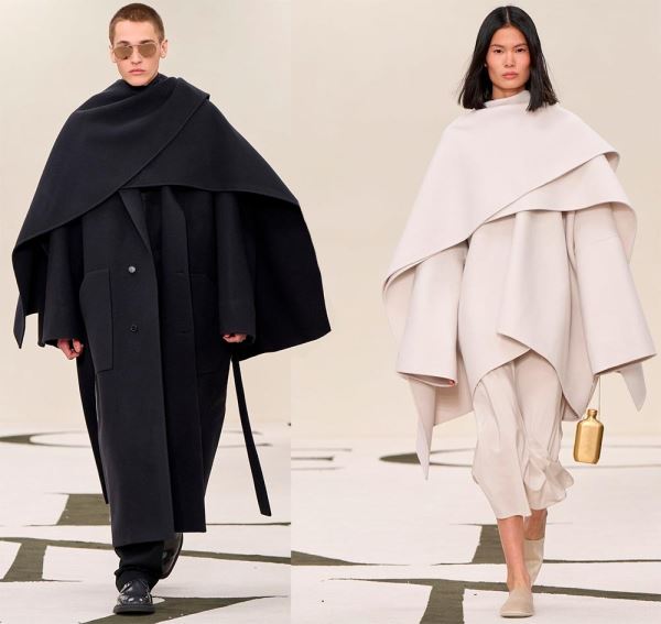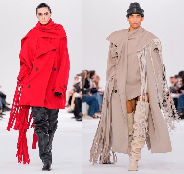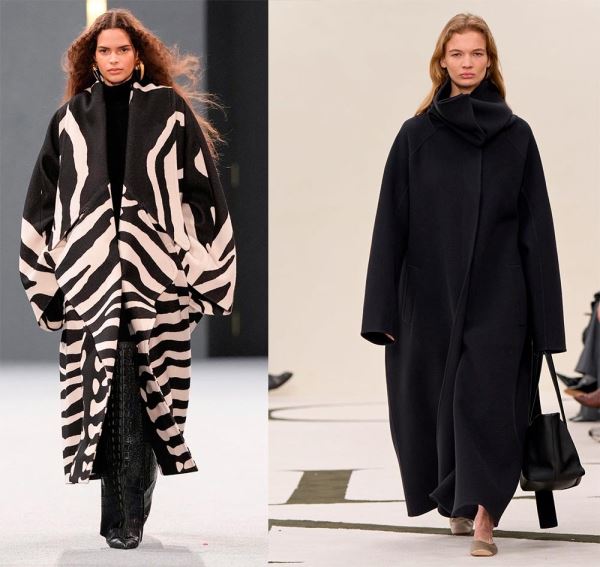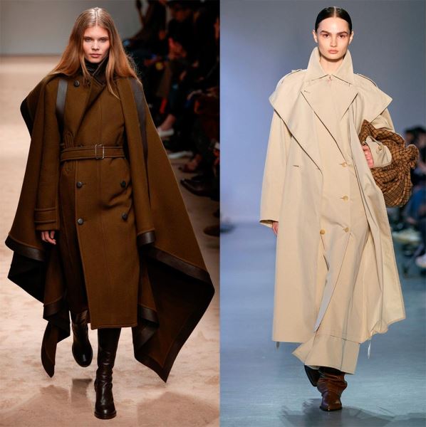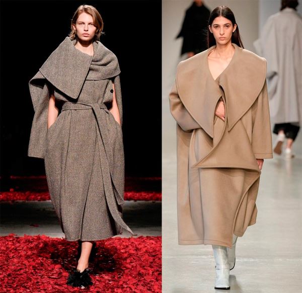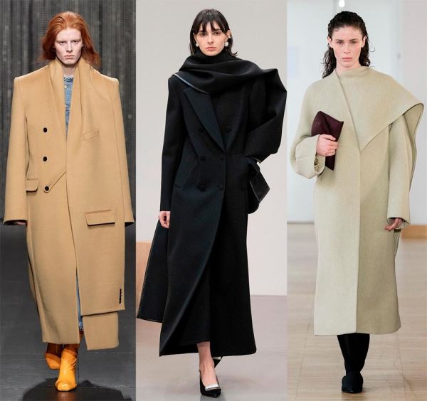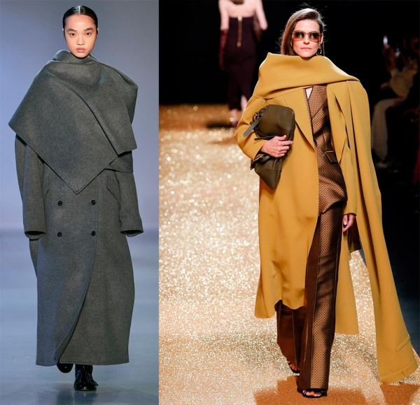 Это один из самых примечательных трендов нового сезона. В нем объединяется практичность и стиль. Палантин может быть включен в конструкцию пальто, что создает эффект многослойности, а может стать самостоятельной деталью. В любом случае палантин добавляет тепло и делает образ стильным, он может быть из того же материала что и пальто, создавая монохром. Пальто в сочетании с палантином или длинным шарфом дизайнеры предлагают в стиле оверсайз с акцентированными плечами.