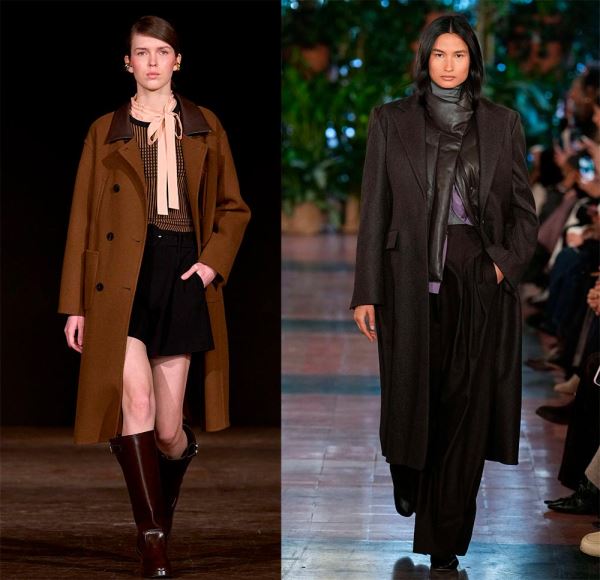 Длинное пальто вытягивает силуэт, придает образу строгость и одновременно элегантность. В новом сезоне многие бренды предлагают длинные пальто прямого кроя, без лишнего декора, но от этого они не становятся скучными. Носить такое пальто дизайнеры рекомендуют расстегнутым, поэтому позаботьтесь о разнообразии базовых вещей: водолазок, брюк, джинсов, обуви.