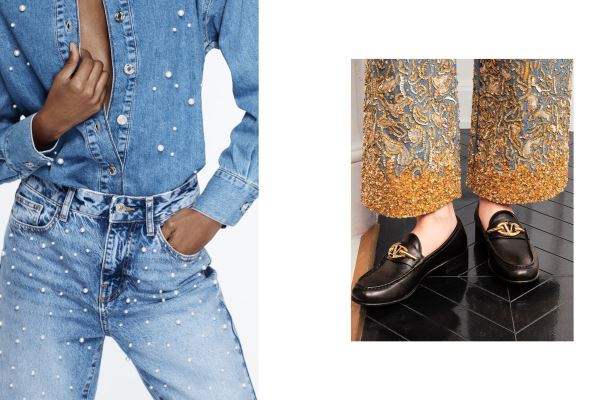 Радужные пайетки: Здесь действует железное правило — только нейтральный фон. Черный, белый, серый или деним без окраса (оттенок ecru) позволят разноцветному блеску играть, не создавая впечатление карнавального костюма.