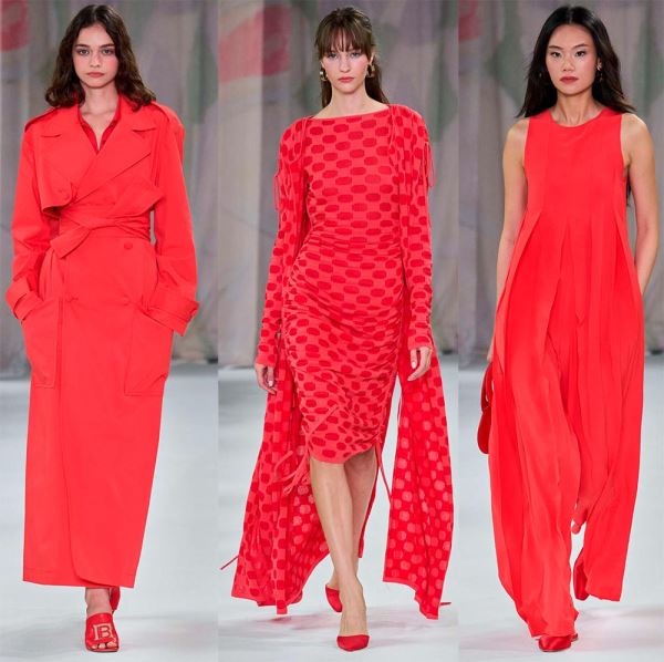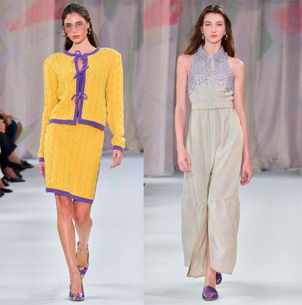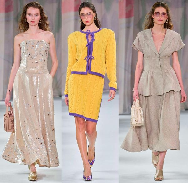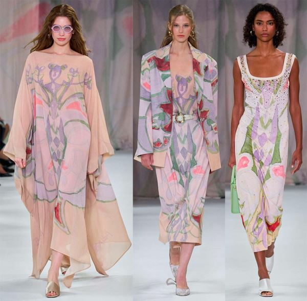 Открывает коллекцию свободный костюм с юбкой, украшенный крупным принтом из знаменитой серии картин художника-футуриста Джакомо Балла «Futurfarfalla», посвященной бабочкам. Возможно, это напоминание всем, что лучше «всегда начинать заново и принимать новые взгляды на привычные вещи, подобно тому как бабочка летает, открывая для себя мир».