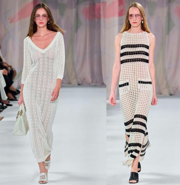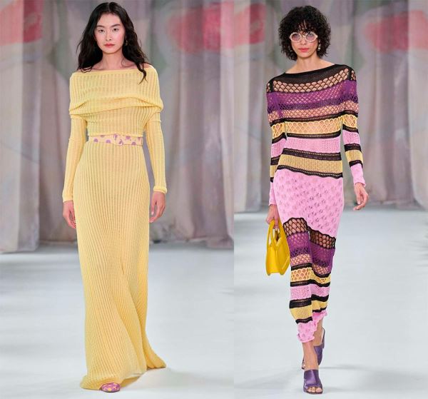 Облегающие трикотажные платья с нежной фактурой выгодно подчеркивают фигуру. Все модели представлены в различных вариантах, среди которых платье с яркими полосками, связанными оригинальными узорами в виде сетки, платье лимонного цвета в рубчик, ажурные узоры…