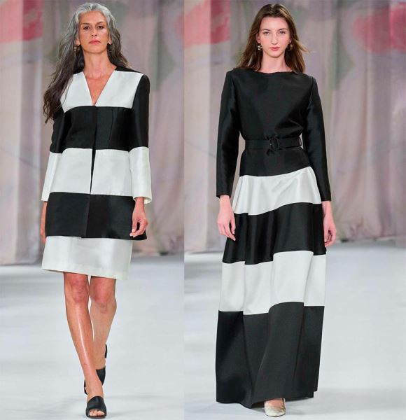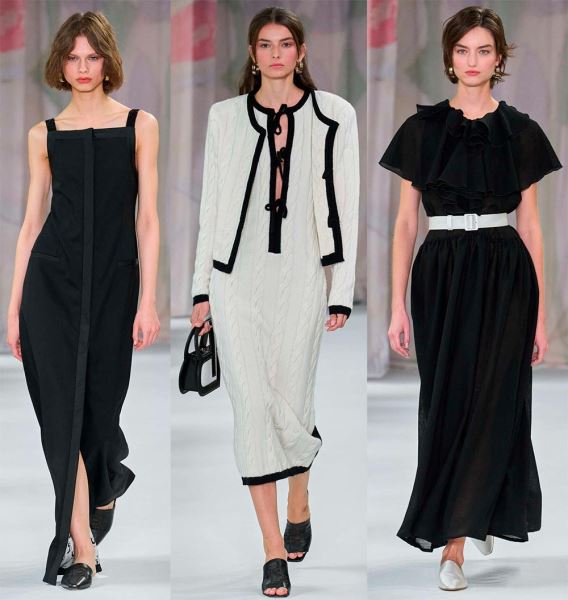 Черный цвет всегда в моде. Он придет на помощь, если вы не знаете, что надеть. Черное платье – признак элегантности и роскоши. С помощью чёрного цвета можно создать целый ряд модных образов, в том числе комбинируя его с другими цветами. Особенно выразительно смотрятся образы в черно-белых вариантах, как например, у Laura Biagiotti. Даже просто черная окантовка в белом костюме подчеркнет элегантность и изысканность.