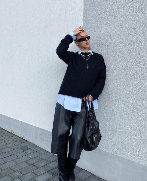 - добавьте объемный свитер оверсайз или структурированный блейзер;
