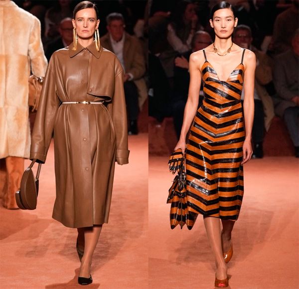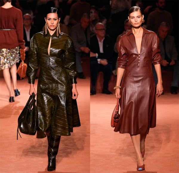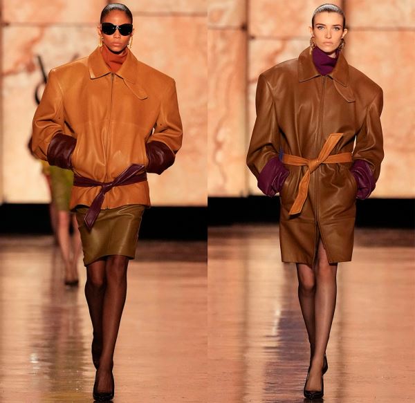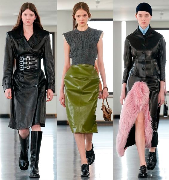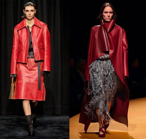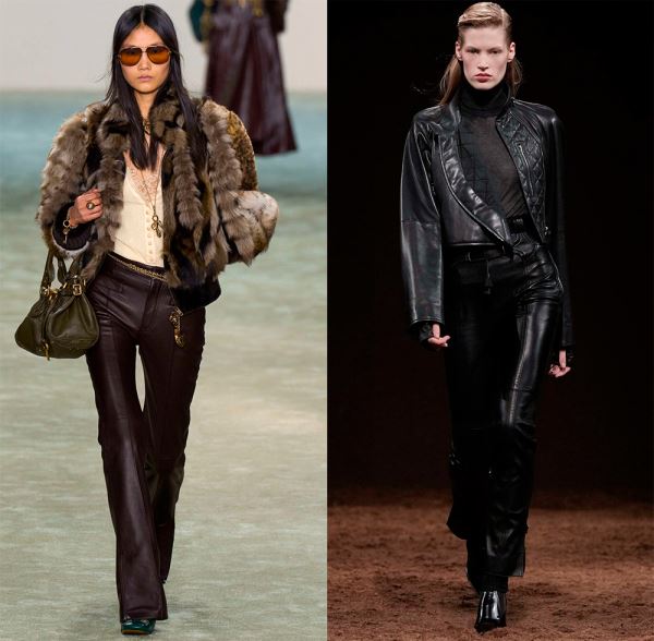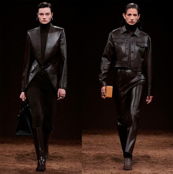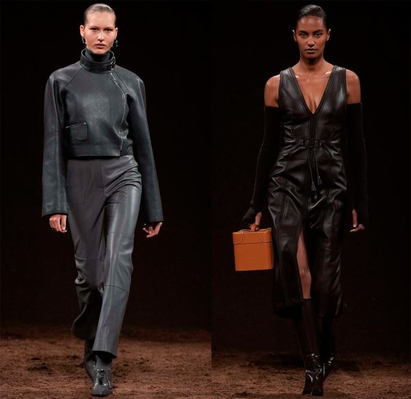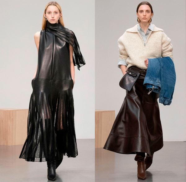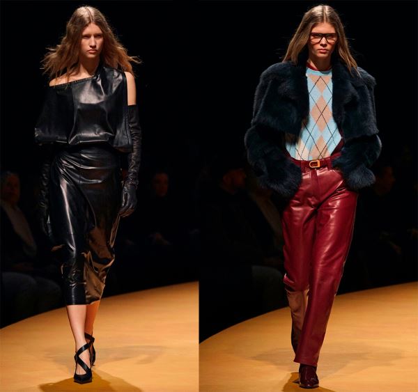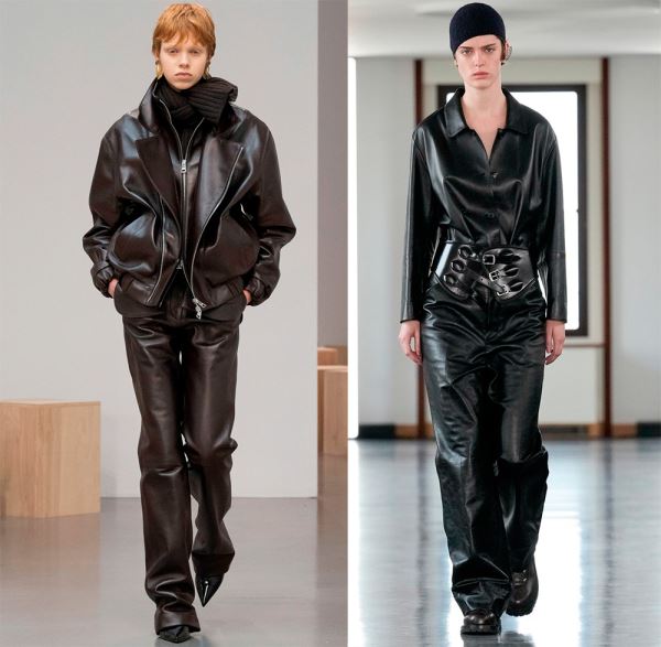 В коллекциях представлено богатство выбора, поэтому в сезоне 2025-2026 в моде любые предметы гардероба из кожи, от коротких шортов, топов и мини-юбок, до кожаных плащей длиной в пол и костюмов с юбкой или брюками.