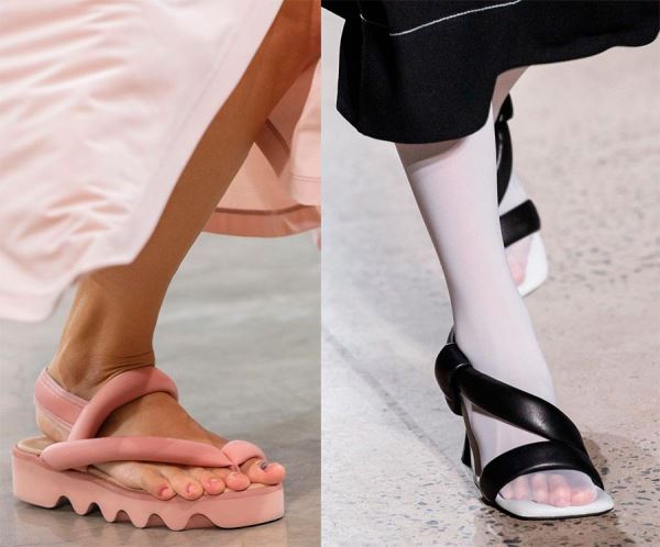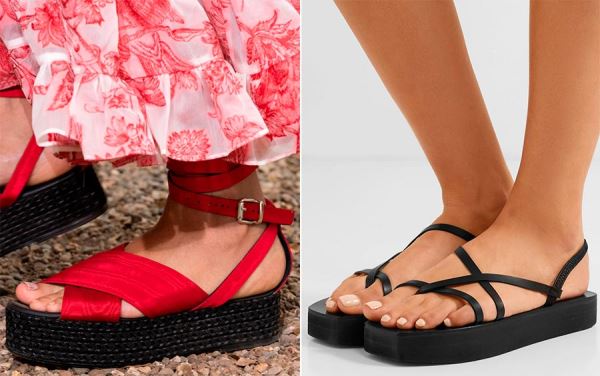 Помимо обуви с платформой, актуальны модели на широкой подошве и плоской танкетке, как мы носили в 90е. Подошва может быть из ротанга или пробки, плетеная или кожаная — это абсолютно неважно, модным будет любой вариант. Главное, при выборе обуви с платформами и танкетками — ходить аккуратно и беречь лодыжки.