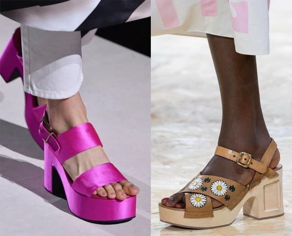 В моде 70е, и вспоминая эту эпоху, дизайнеры не забыли и про обувь. Босоножки на массивной платформе из 70х напоминают об эпохе диско и добавляют модного ретро в образ.