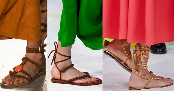 Можно повязать длинные ремешки вокруг голени — босоножки в греческом стиле снова в моде. А плетеные сандалии в гладиаторском стиле стали одним из основных трендов сезона.
