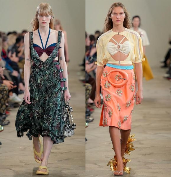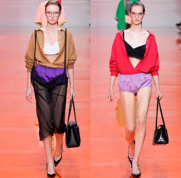 Тренд непростой, не только в смысле избыточной соблазнительности, но и стилистическом. Подобрать бандо-топ или бра может оказаться нелегкой задачей, комплект будет смотреться сомнительно и вызывать у окружающих самые разные впечатления и далеко не самые лучшие. Даже на подиуме на моделях этот тренд смотрится далеко не так однозначно, кому-то образы Prada покажутся неряшливыми и нелепыми, а кто-то будет в восторге.