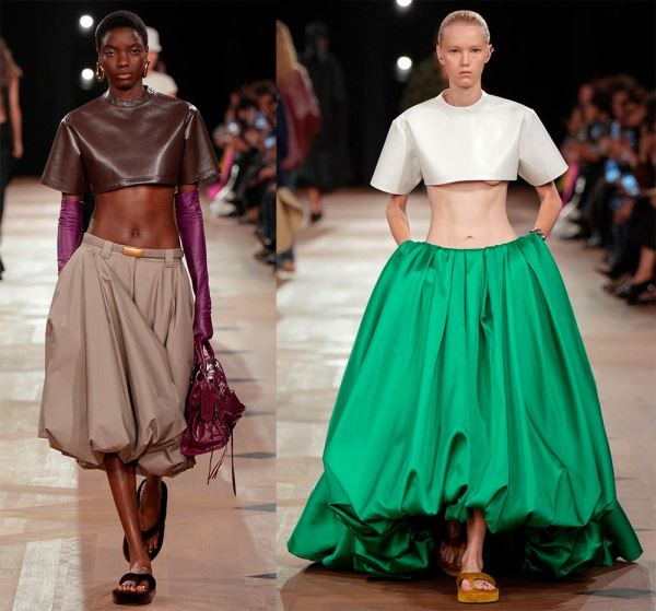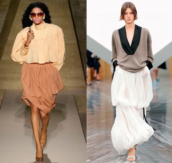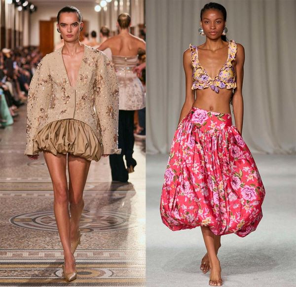 Да, платье-баллон играет с объемами, изменяет форму силуэта, оно может быть легким и по-девичьи задорным, подчеркивать грацию и элегантность. Но есть еще юбки-баллоны, с которыми также можно создать выразительные и смелые образы. Надевая платье, образ, можно сказать, уже завершен, с юбкой всё обстоит иначе, надо подобрать верх. Но зато с одной и той же юбкой можно создать несколько разных образов. Вы можете менять верх, надевая топы, футболки, блузки, жакеты, но при этом старайтесь, чтобы все эти вещи не создавали излишний объем. Правда, дизайнеры позволяют себе разные варианты…
