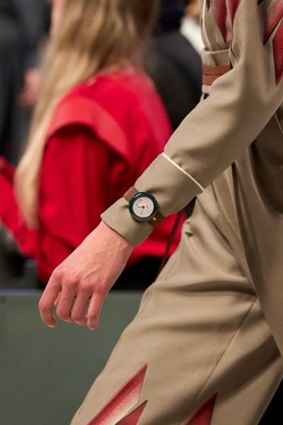 Если раньше рукава подкатывали, чтобы показать часы, теперь их носят прямо поверх манжет. Особенно выигрышно смотрятся модели с крупным циферблатом и металлическими деталями — они придают образу структуру и балансируют между строгостью и роскошью.