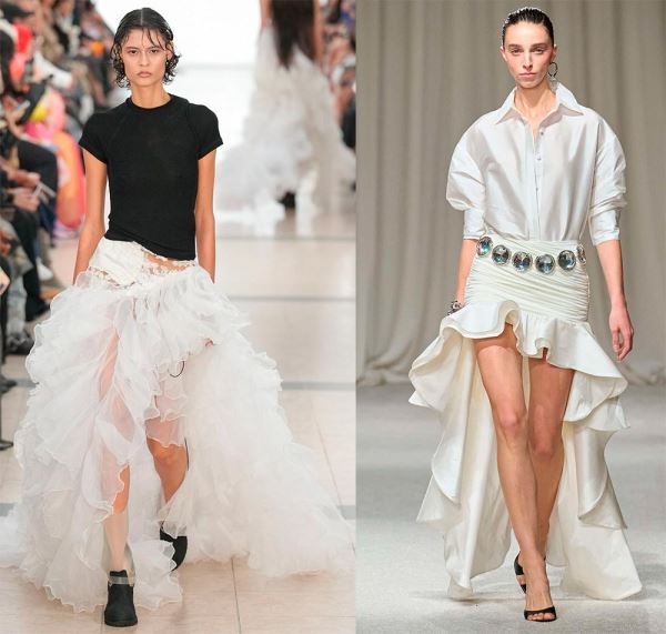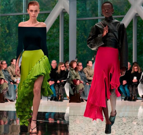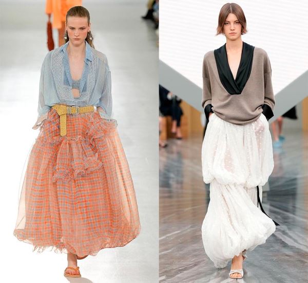 Хотя возможны исключения, в случае если верх является комплектной вещью, и вместе они создают раздельное платье. Такие вещи можно носить вместе и порознь. Если верхняя часть не является укороченным топом, то верх и низ сливаются в единое платье. Таких комплектов тоже не мало на Неделях моды, но они заслуживают отдельной публикации, сегодня же обратим внимание только на юбки.